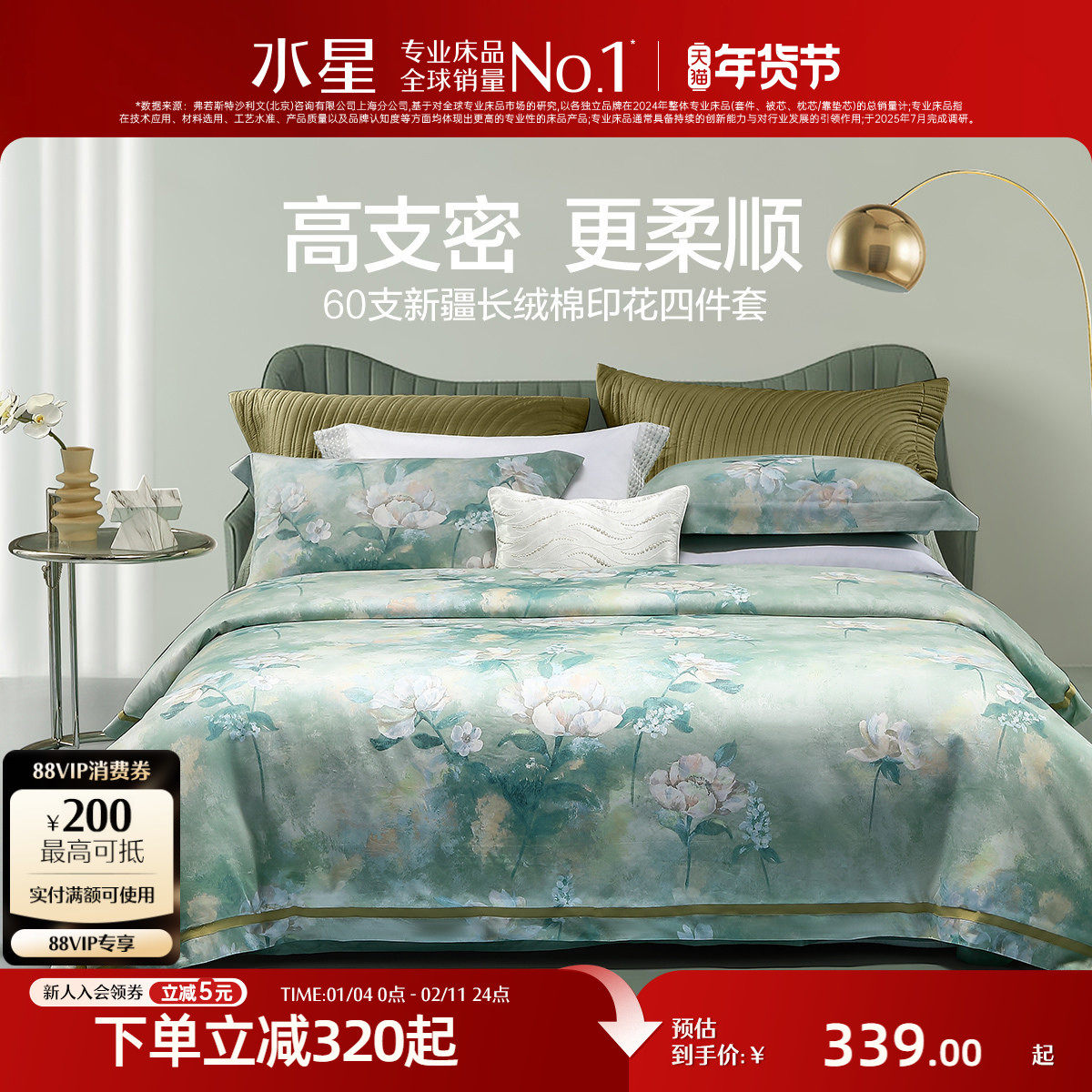 水星家纺60支长绒棉四件套100纯棉套件轻奢全棉床单被套家用床品