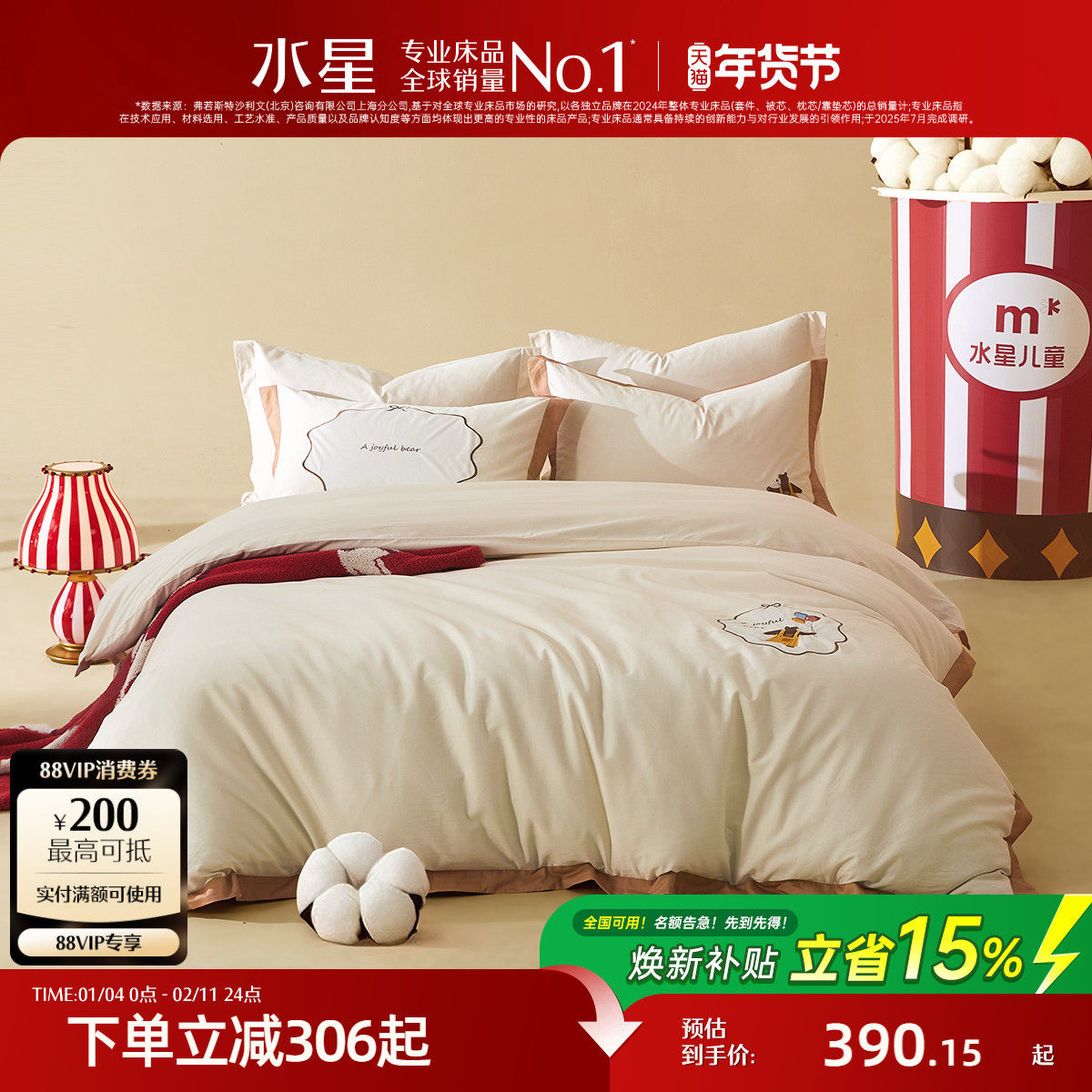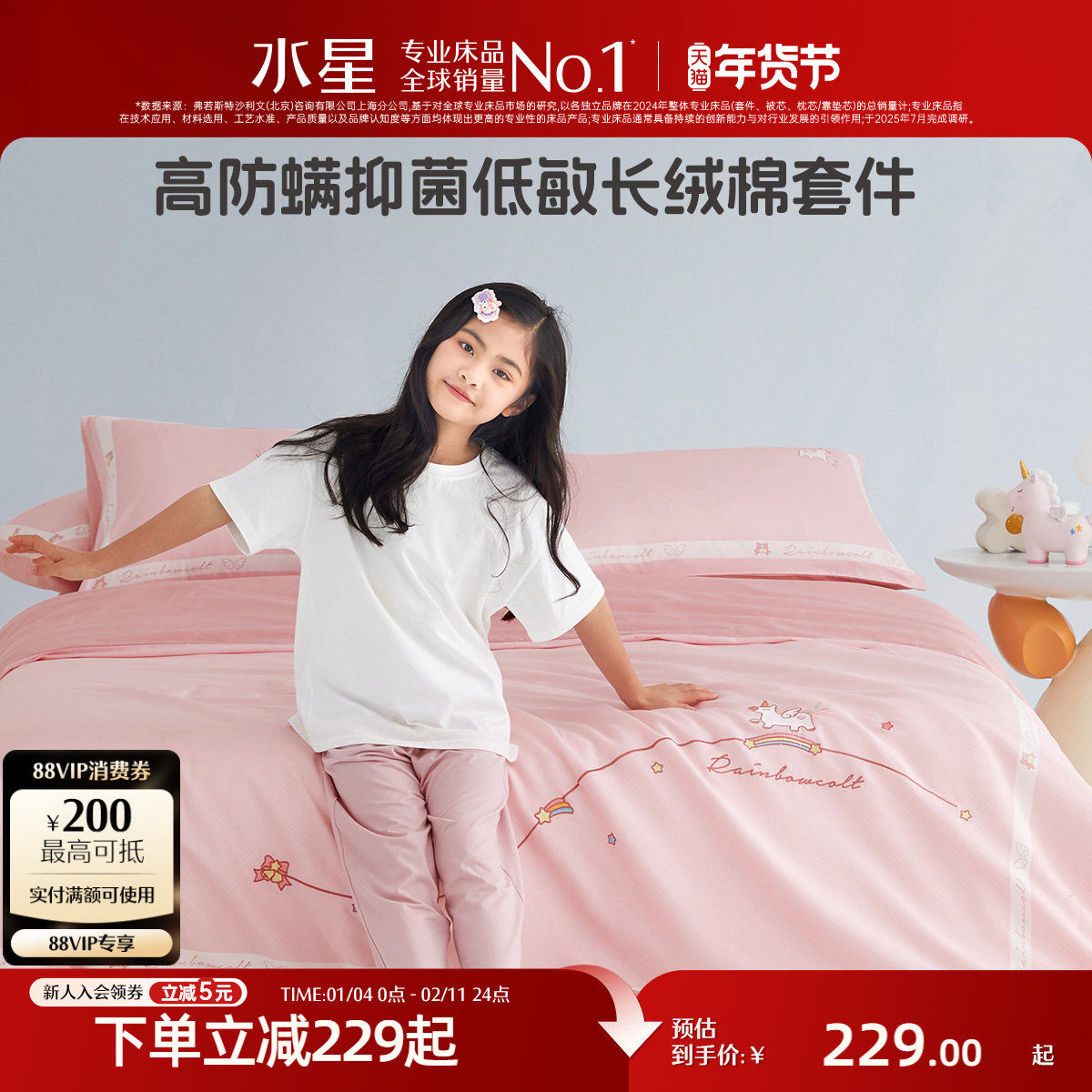 水星家纺60支长绒棉三/四件套裸棉母婴A类抑菌套件儿童卡通床品