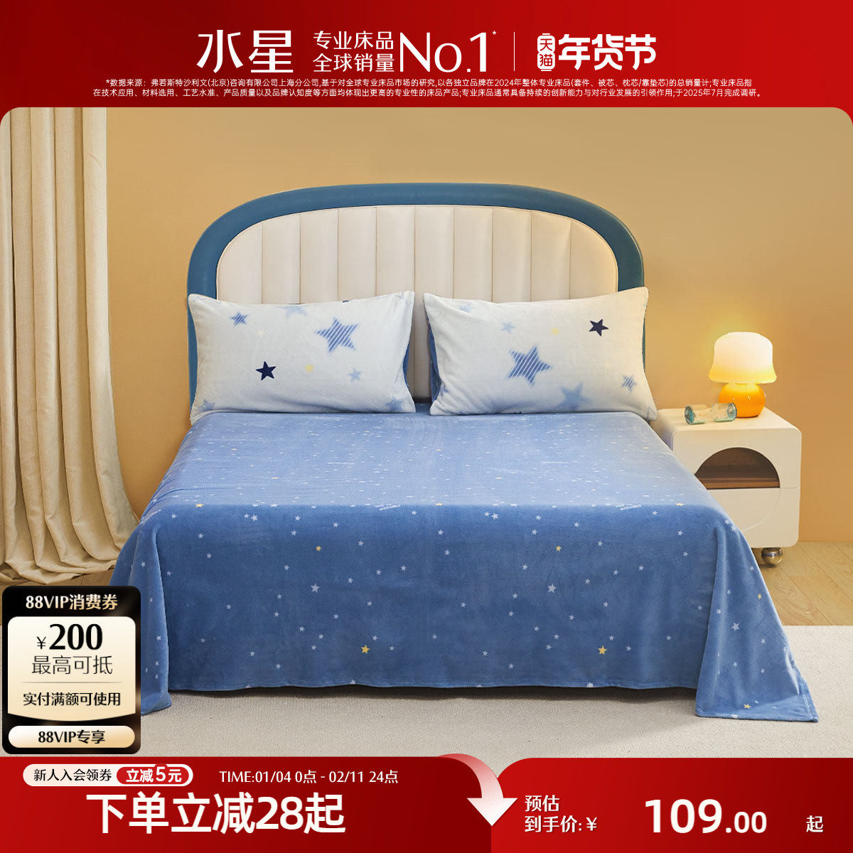 水星家纺儿童牛奶绒床单单件母婴A类抑菌抗静电暖绒被单法兰绒冬
