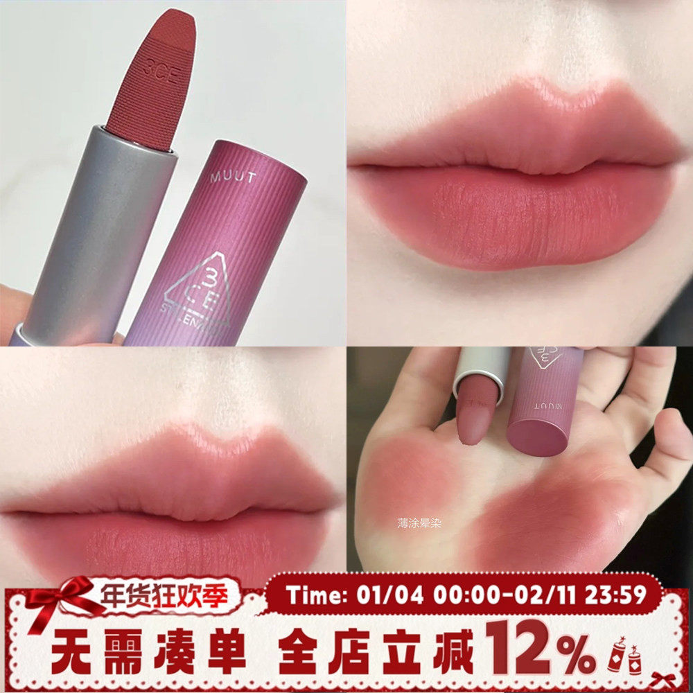 正品大牌口红3CE EUNHYE HOUSE持久雾面哑光豆沙色脏橘南瓜色唇膏
