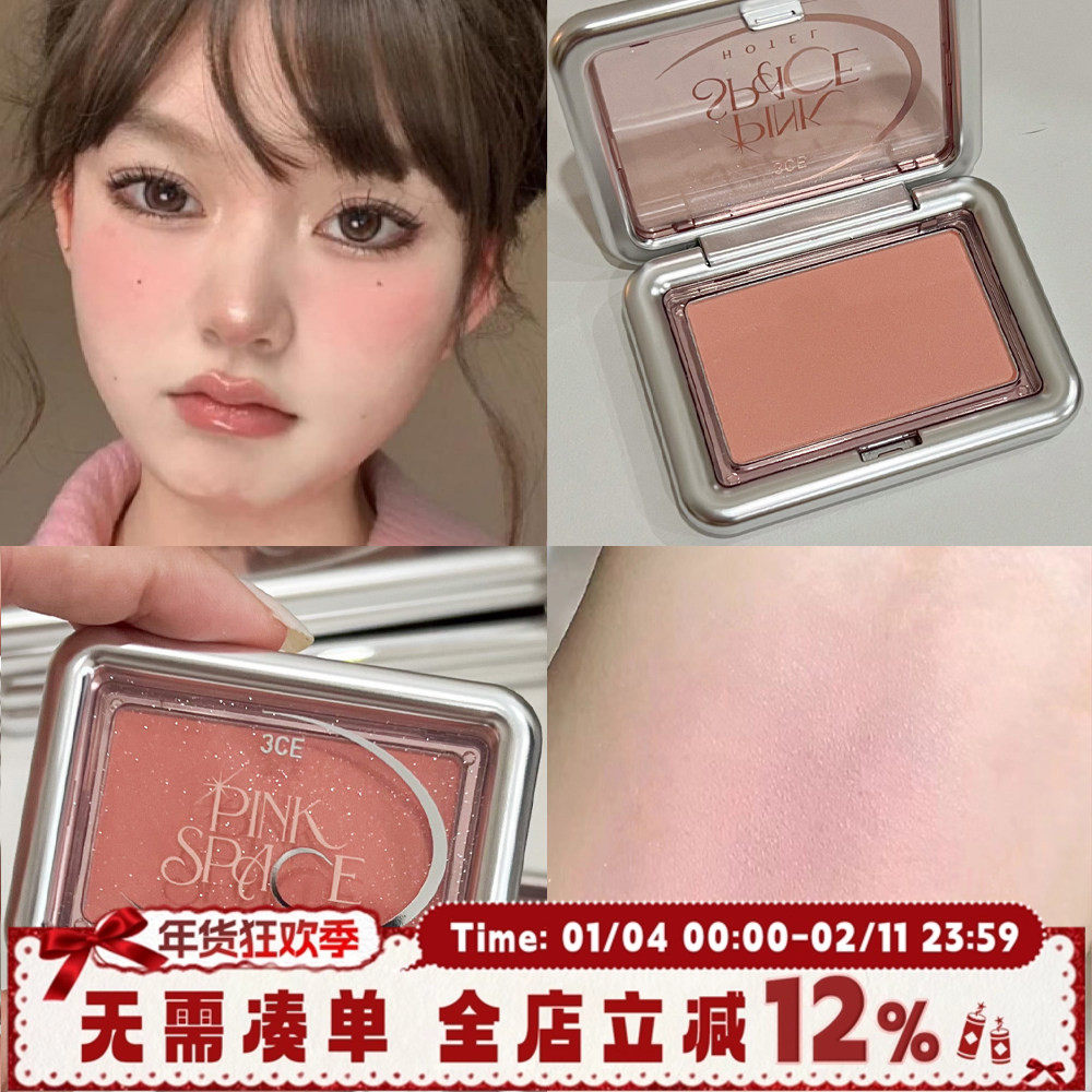 3ce小方块单色腮红粉钻星河系列SLIDE SLOWLY豆沙粉自然粉嫩温柔