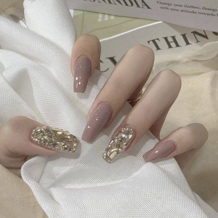 背胶款假指甲成品美甲贴片可穿戴拆卸孕妇新娘婚纱拍照钻石花甲片