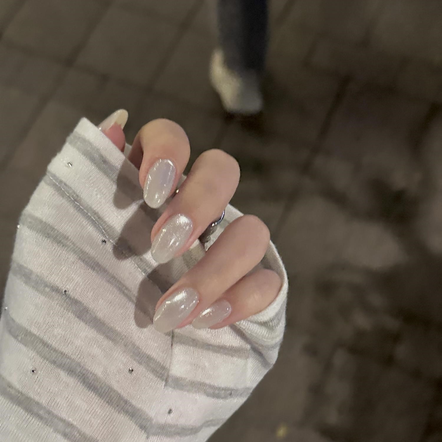 ins爆款白女手工穿戴甲高级感老钱风冰透乳白假指甲贴片婚甲拍照