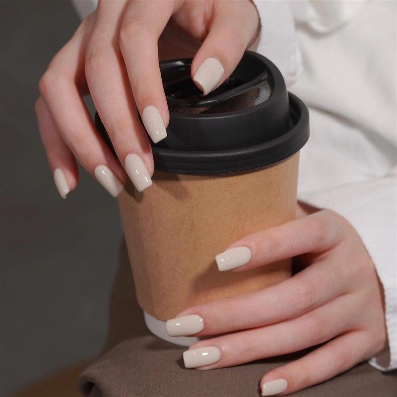 2025奶白色穿戴甲短款成品贴片持久显白假指甲高级甲片拍照孕妇用