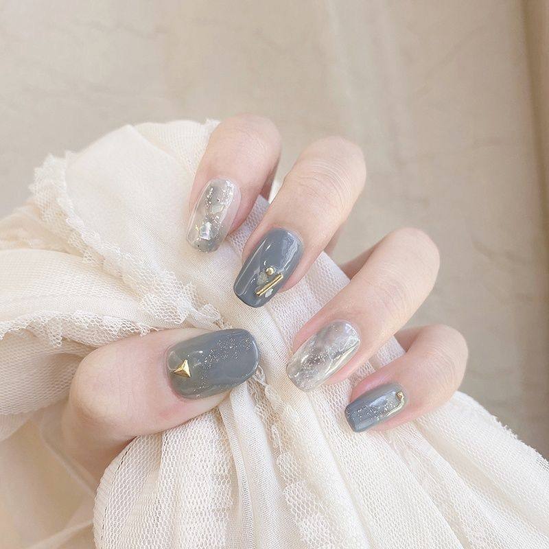 显白雾霾灰手工定制光疗美甲成品拍照穿戴甲可拆卸假指甲贴片防水