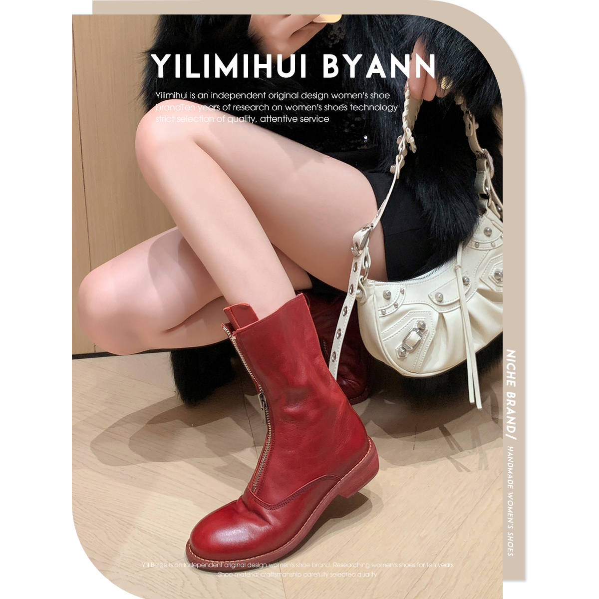 - 后拉链短靴