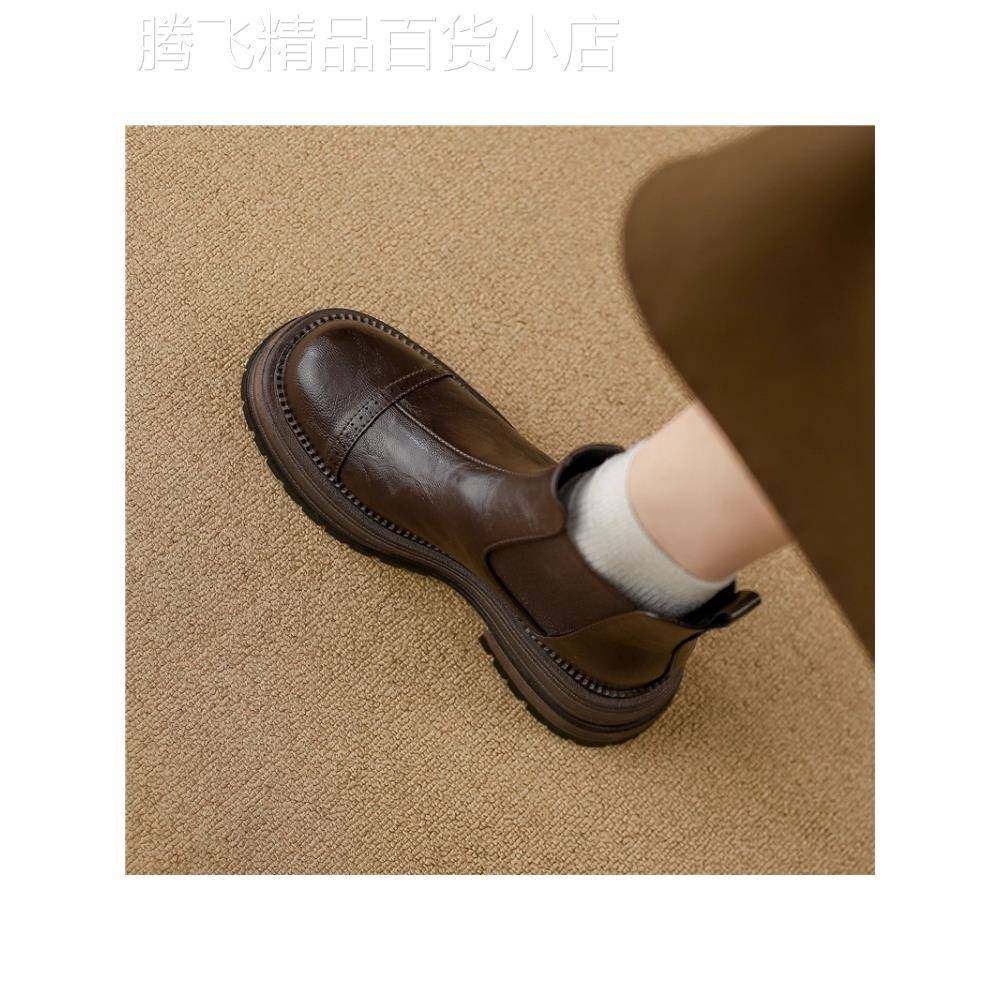 - 真皮短靴女春秋单靴平底