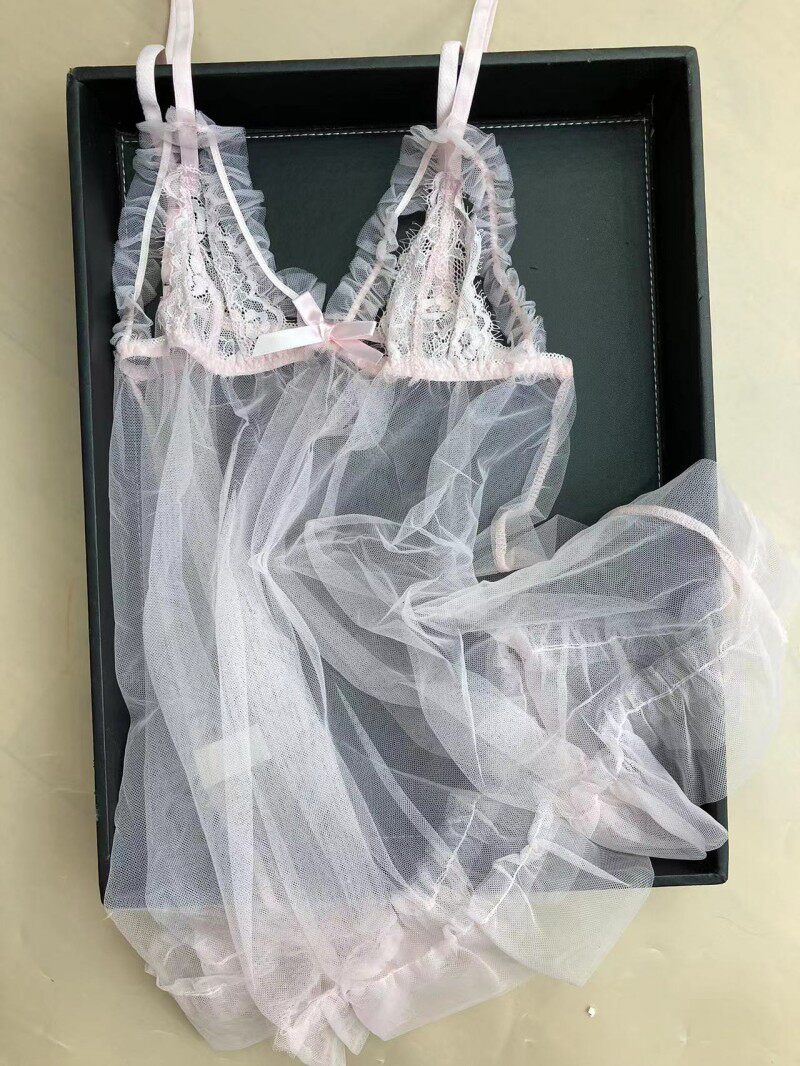 性感纯欲风透明网纱睡衣少女新款超薄蕾丝吊带睡裙套装氛围感战袍