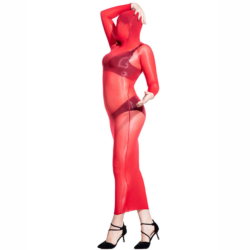 卿荷912针丝袜连衣裙透明睡衣超薄8d睡裙性感女全包头丝袜连身衣
