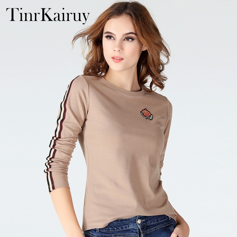 t恤女长袖秋装 2025年新款上衣刺绣洋气欧货小衫欧洲站打底衫内搭
