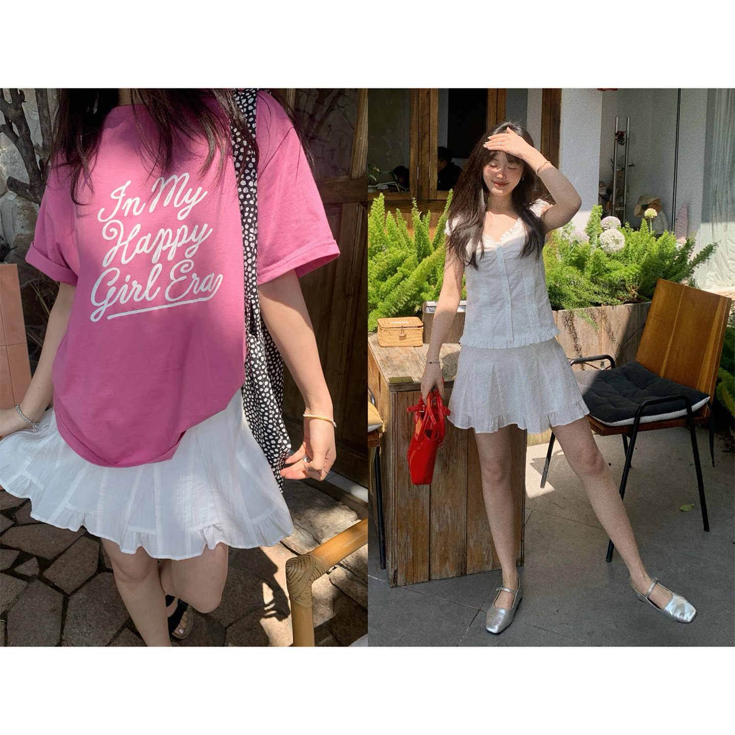 一三良品小个子 韩系甜妹百搭白色木耳边短裙a字半身裙打底裙女夏