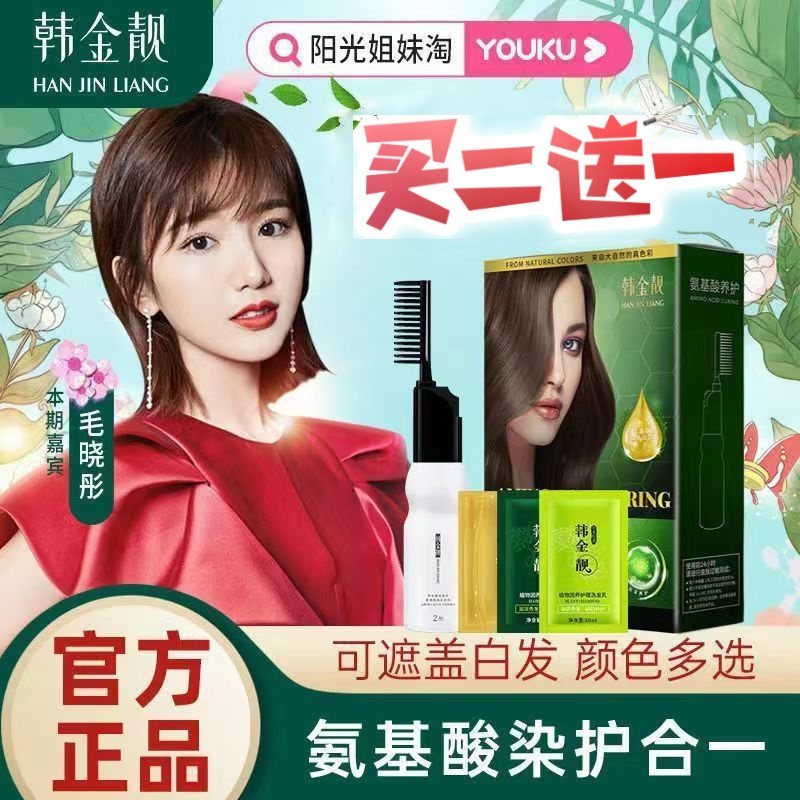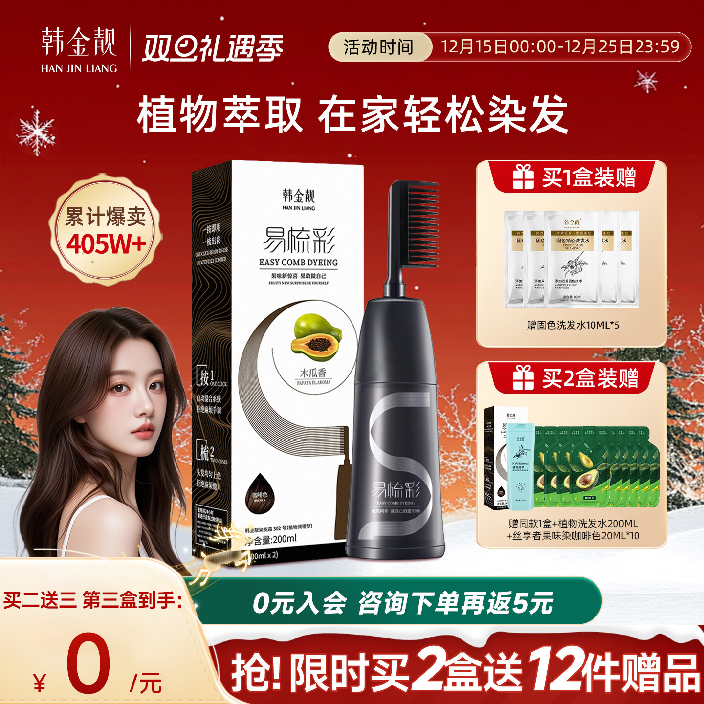 韩金靓染发剂官方旗舰黑茶色植物纯女梳染发膏男专用自己在家染发