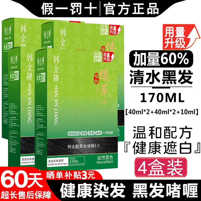 韩金靓染发剂官网清水黑发正品盖白纯黑色植物染发膏含金量韩金亮