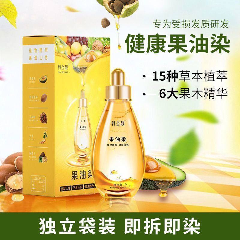 韩金靓官方旗舰店正品染发剂女泡泡染果油植物纯自己在家遮白染膏