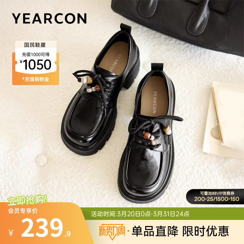 意尔康女鞋2026春季乐福鞋女士厚底英伦学院风小皮鞋配裙子单鞋