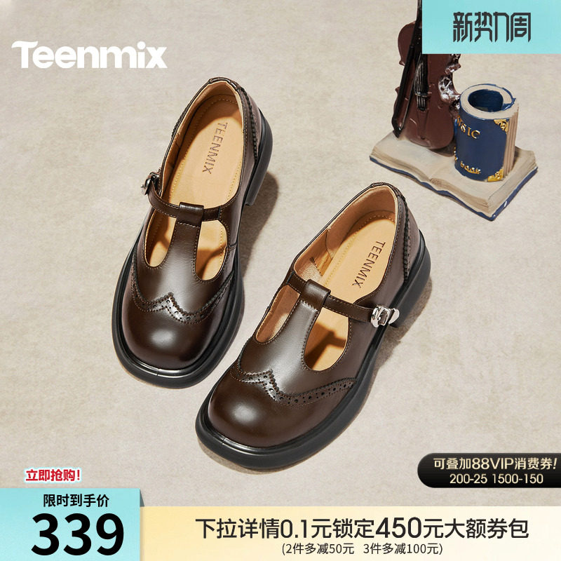 天美意2026春新款粗跟学院英伦乐福鞋复古皮鞋女单鞋KE089AA6
