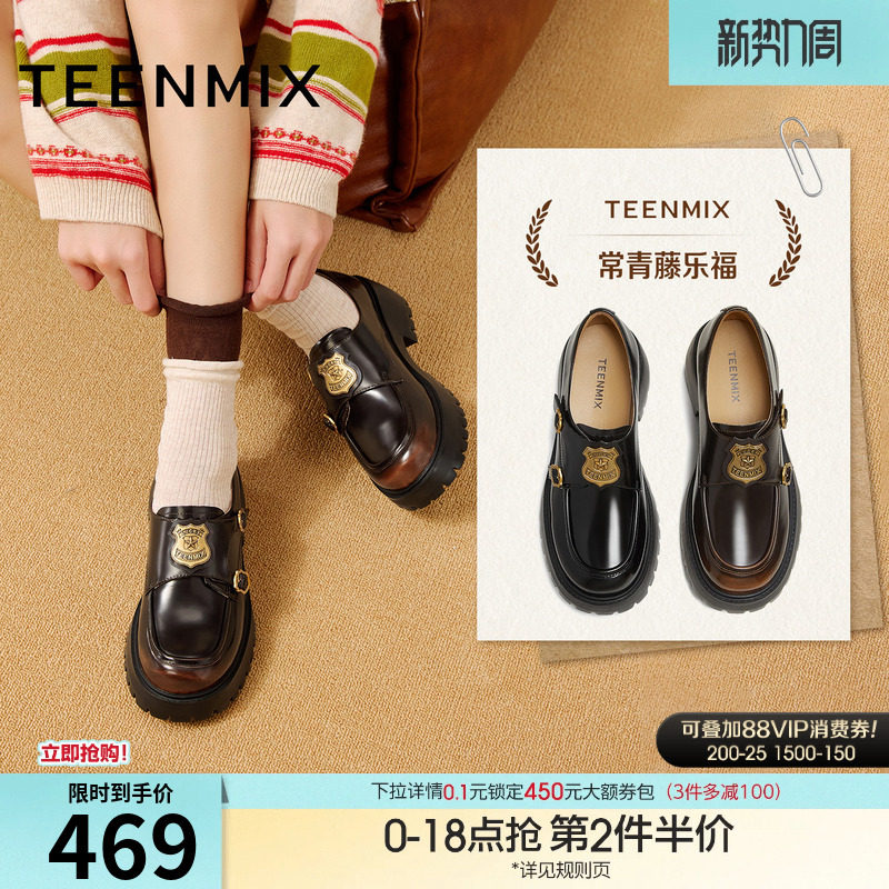天美意厚底学院英伦乐福鞋复古单鞋女软底休闲小皮鞋2026春季新款