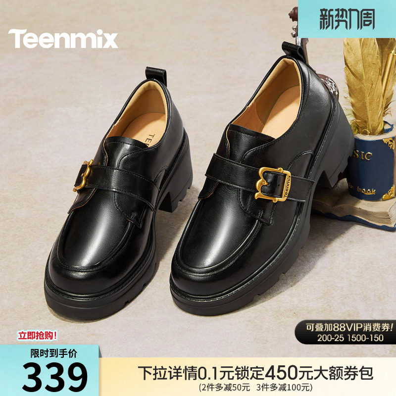 天美意粗跟厚底增高学院英伦乐福鞋复古单鞋女小皮鞋2026春季新款