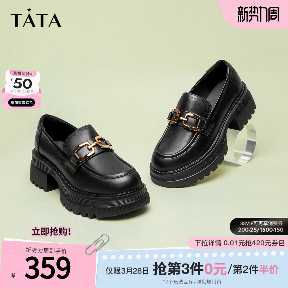 TATA他她英伦厚底jk乐福鞋女鞋黑色学院小皮鞋浅口单鞋子GOK01CA4