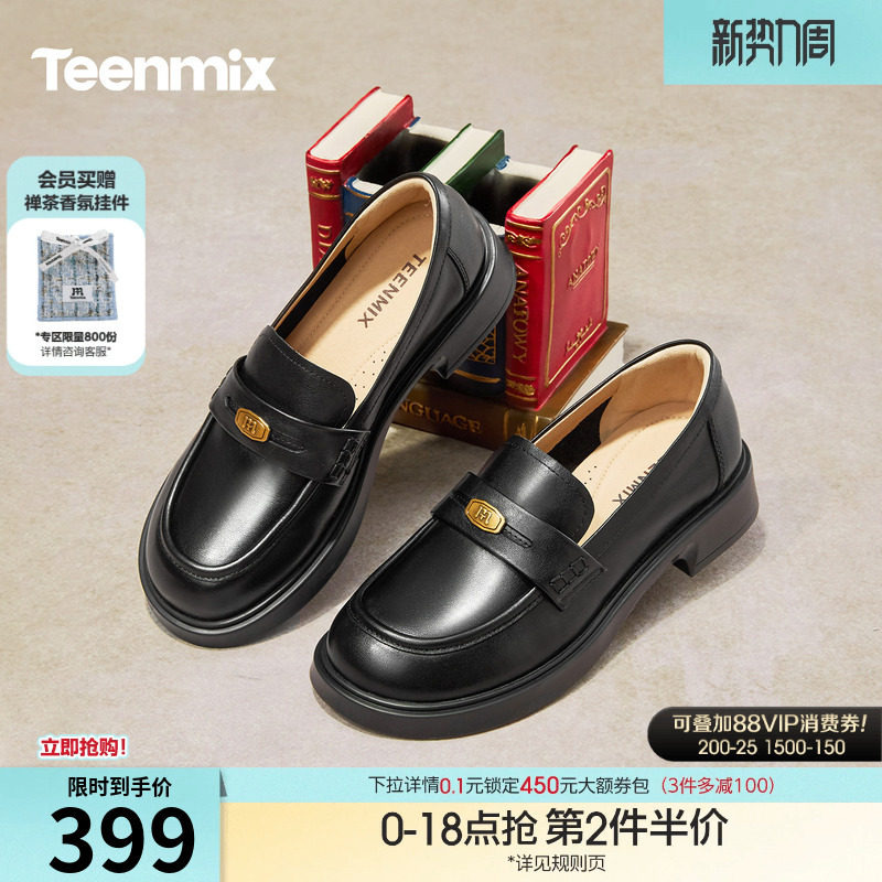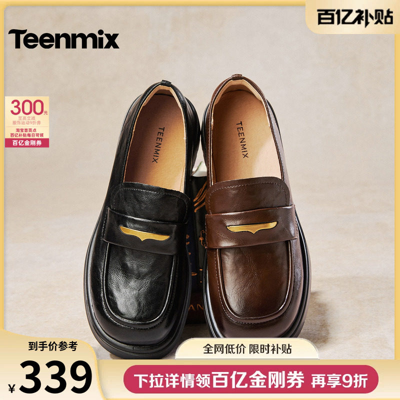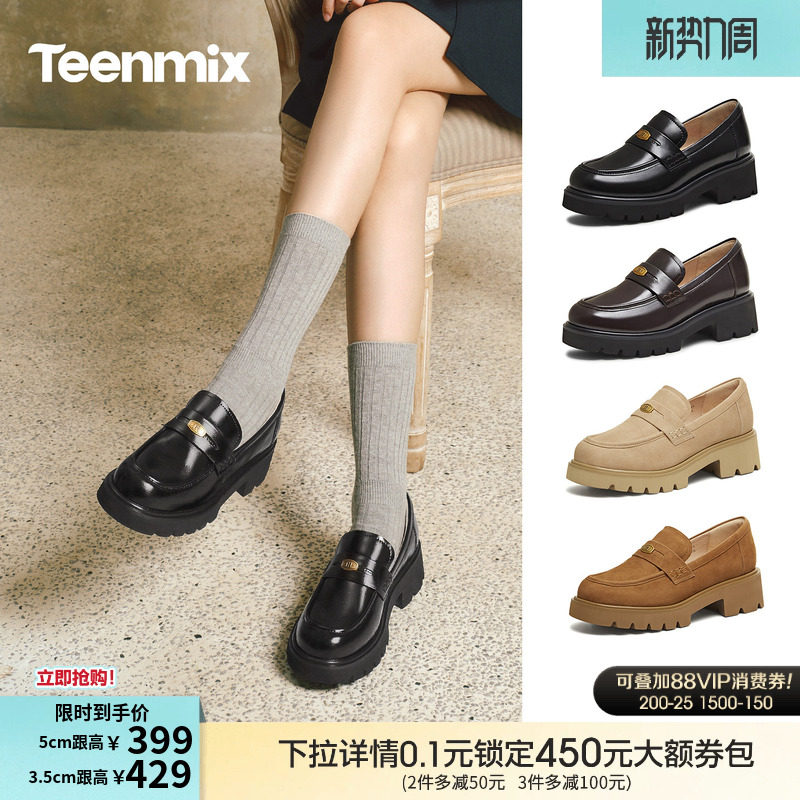 天美意厚底学院英伦乐福鞋复古单鞋女一脚蹬软底小皮鞋2026春新款