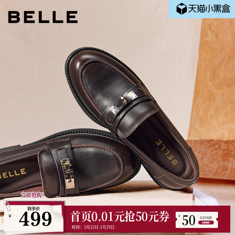 百丽复古学院复古乐福鞋女2026新款真皮黑色小皮鞋单鞋B2973AA6预