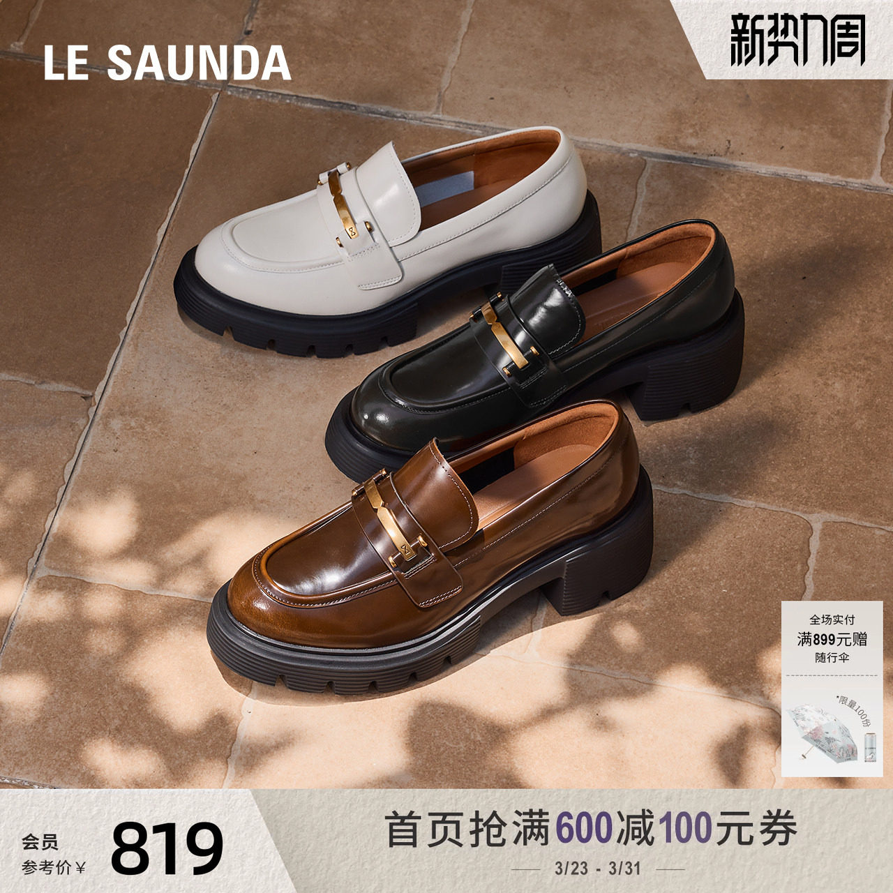 莱尔斯丹春新商场同款粗跟复古厚底真皮学院风乐福小皮鞋女72501