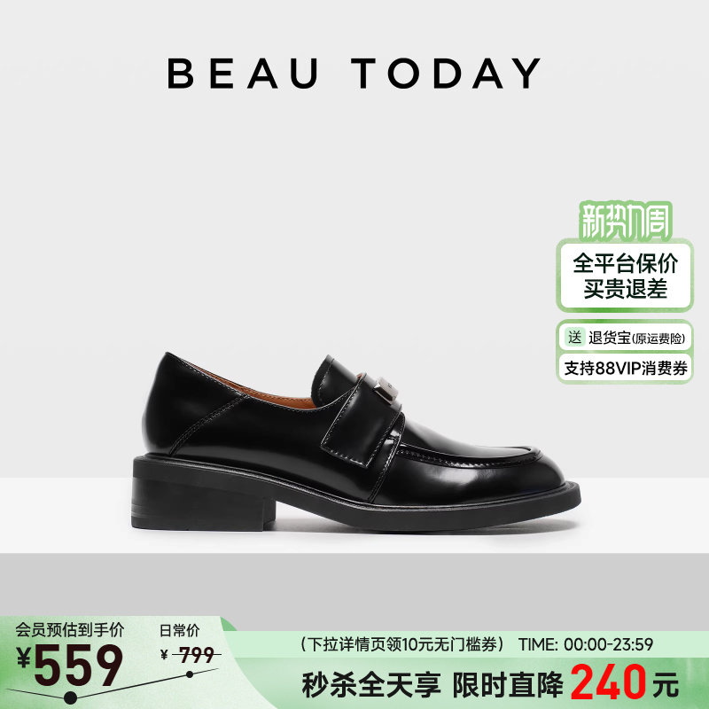 BeauToday春藤学院厚底乐福鞋女2026春新款英伦风小皮鞋黑色单鞋