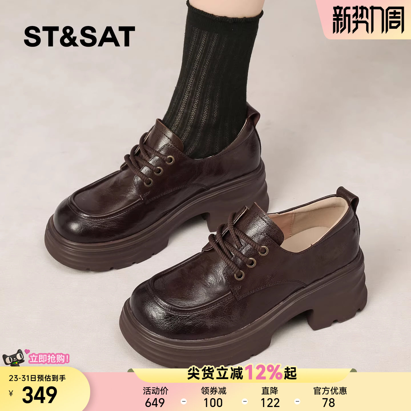星期六英伦真皮小皮鞋女2026春季款厚底舒适学院风单鞋百搭牛津鞋