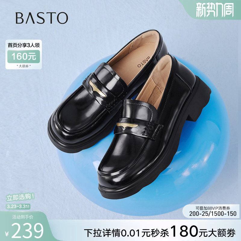 百思图2026春新款英伦学院风厚底乐福鞋小皮鞋通勤女单鞋A0603AA6