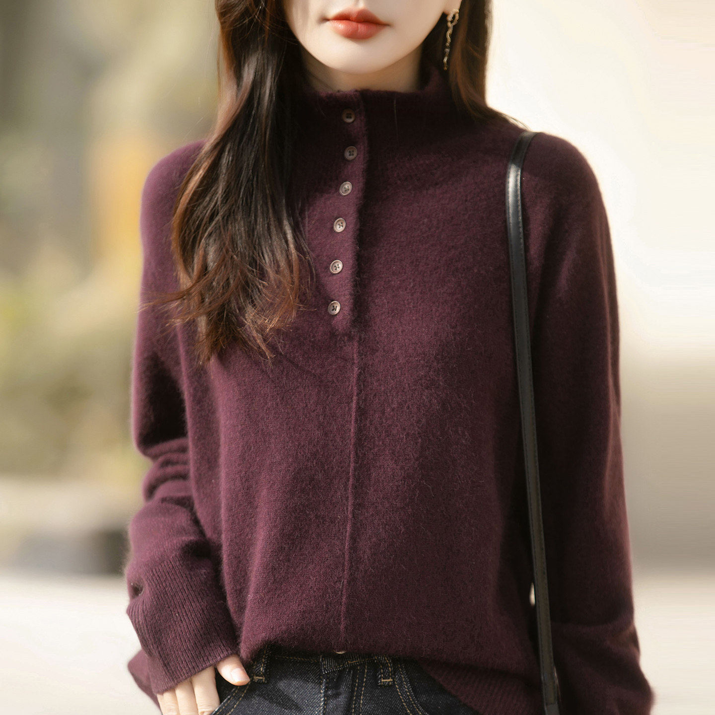- 半高领套头毛衣