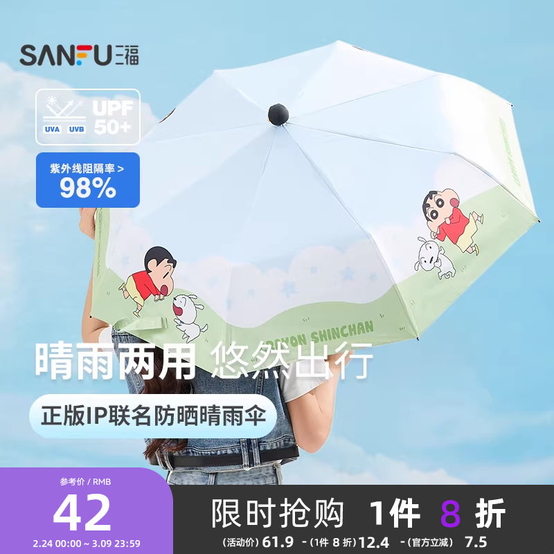 三福雨伞可爱公仔蜡笔小新美乐蒂防紫外线遮阳伞小巧便携五折伞女