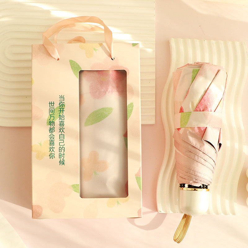 柏纯希礼盒装迷你便携五折伞超大黑胶防晒防紫外线晴雨两用太阳伞