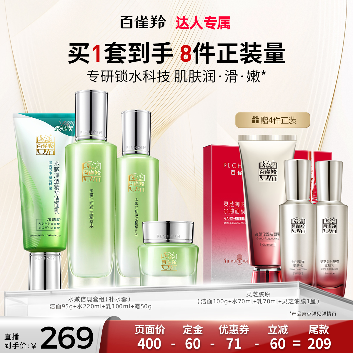 【下拉领淘金币更优惠】百雀羚草本精萃补水保湿修护洁水乳霜护肤