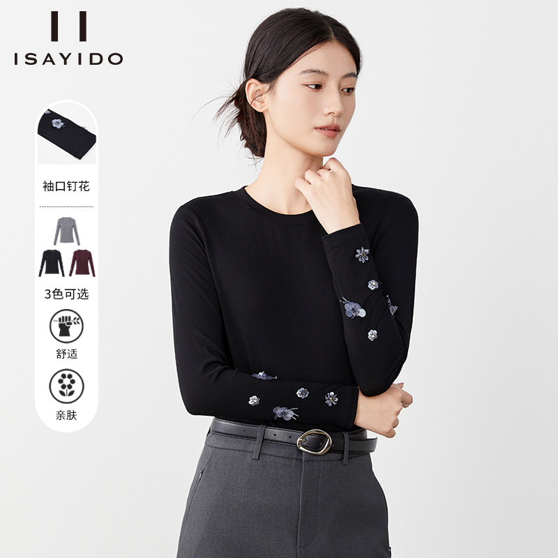 2025春装桑蚕丝长袖t恤女圆领宽松上衣妈妈洋气减龄针织打底小衫