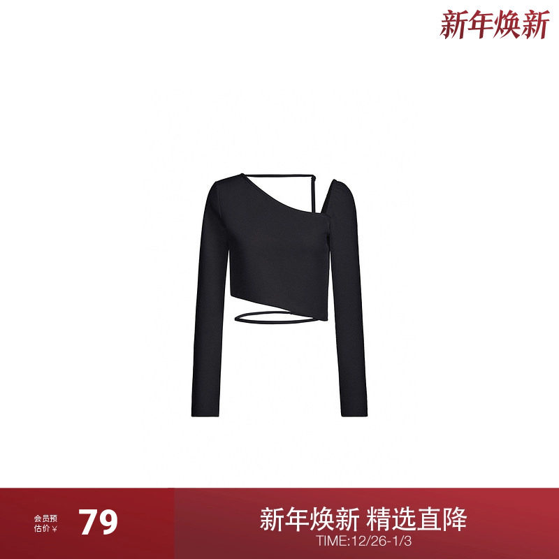空气层短上衣女 ochirly欧时力2024新款春装绑带t恤不规则设计感