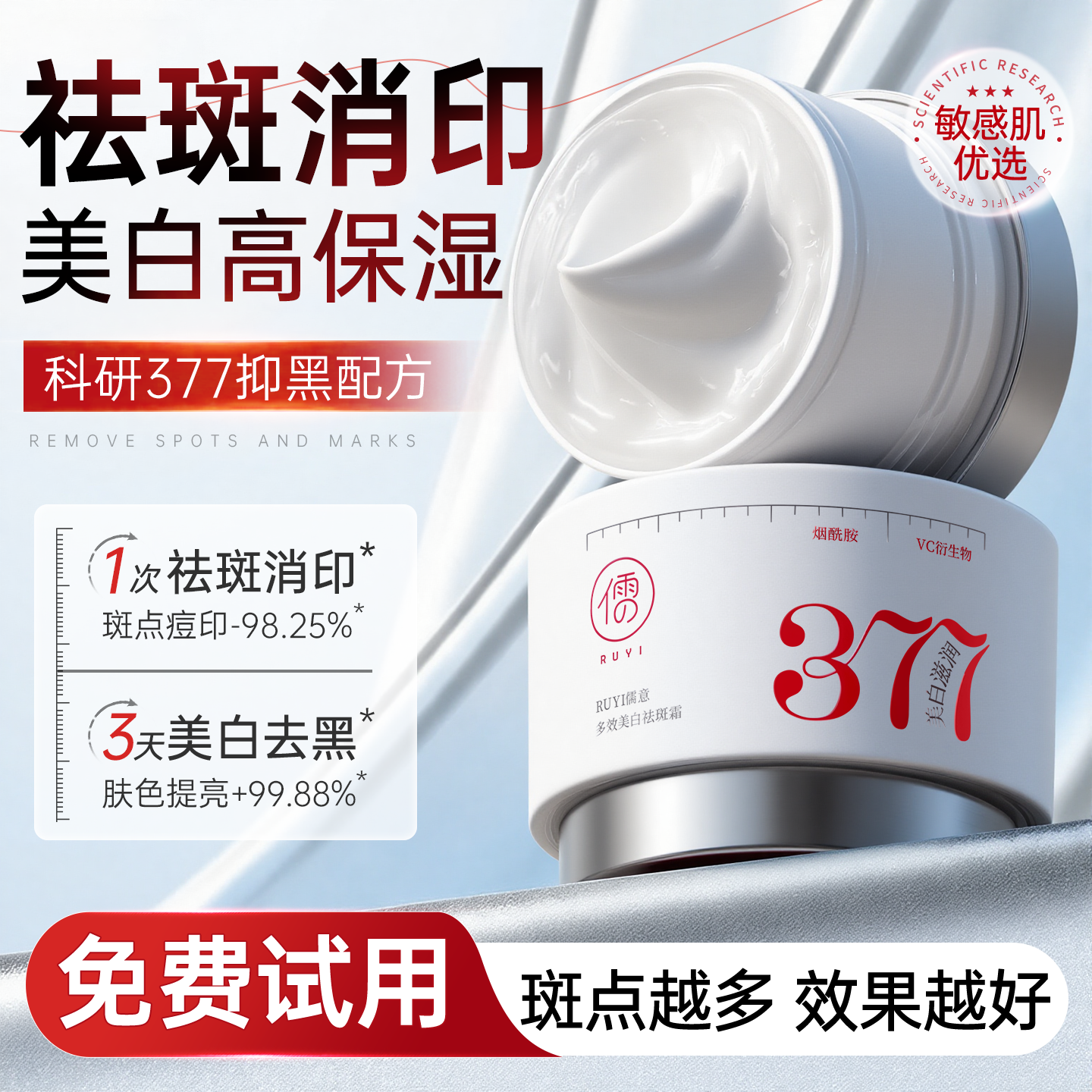 377美白祛斑霜祛黄褐斑雀斑淡化色斑提亮去黄保湿官方旗舰店正品
