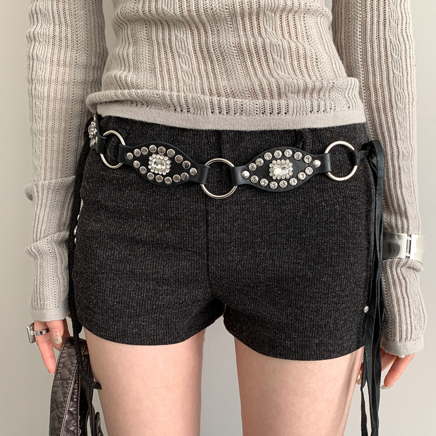 重工设计感铆钉圆环拼接腰带女款小众个性水钻镶嵌配连衣裙子皮带