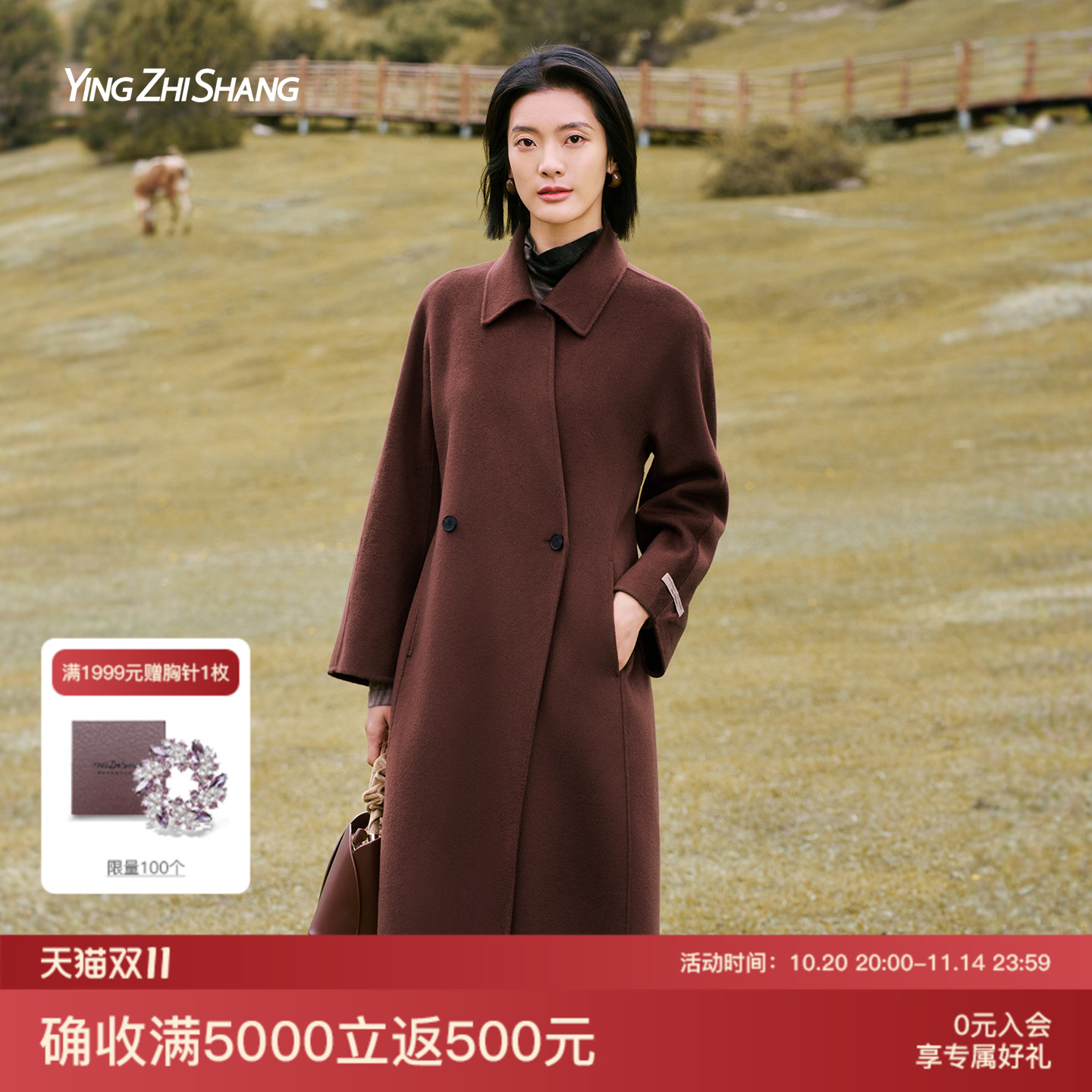 赢智尚酒红色羊毛羊绒双面呢子大衣女款2025新款有质感冬装厚外套