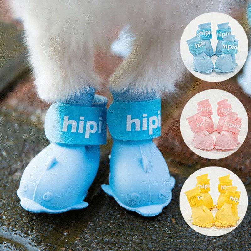 卡通小狗狗鞋子博美比熊泰迪鞋果冻雨靴一套4只防水脚套 宠物雨鞋