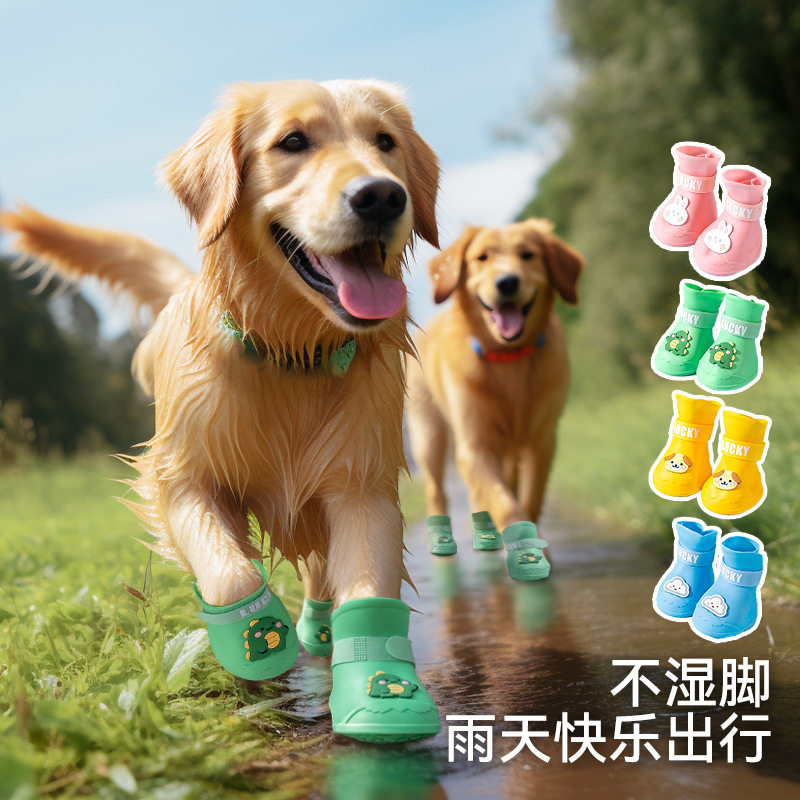 夏季狗狗鞋子大型犬卡通硅胶雨鞋外出防水金毛拉布拉多宠物雨鞋批
