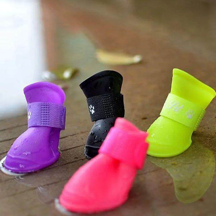 软硅胶宠物雨鞋 防滑耐磨狗狗雨靴 果冻色金毛宠物外出防水鞋子