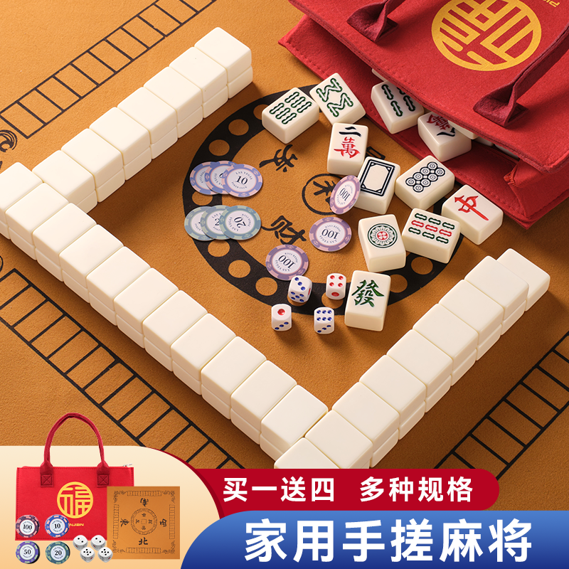 包邮家用麻将牌 一级手洗搓麻将 中大号广东四川手打麻将牌送桌布