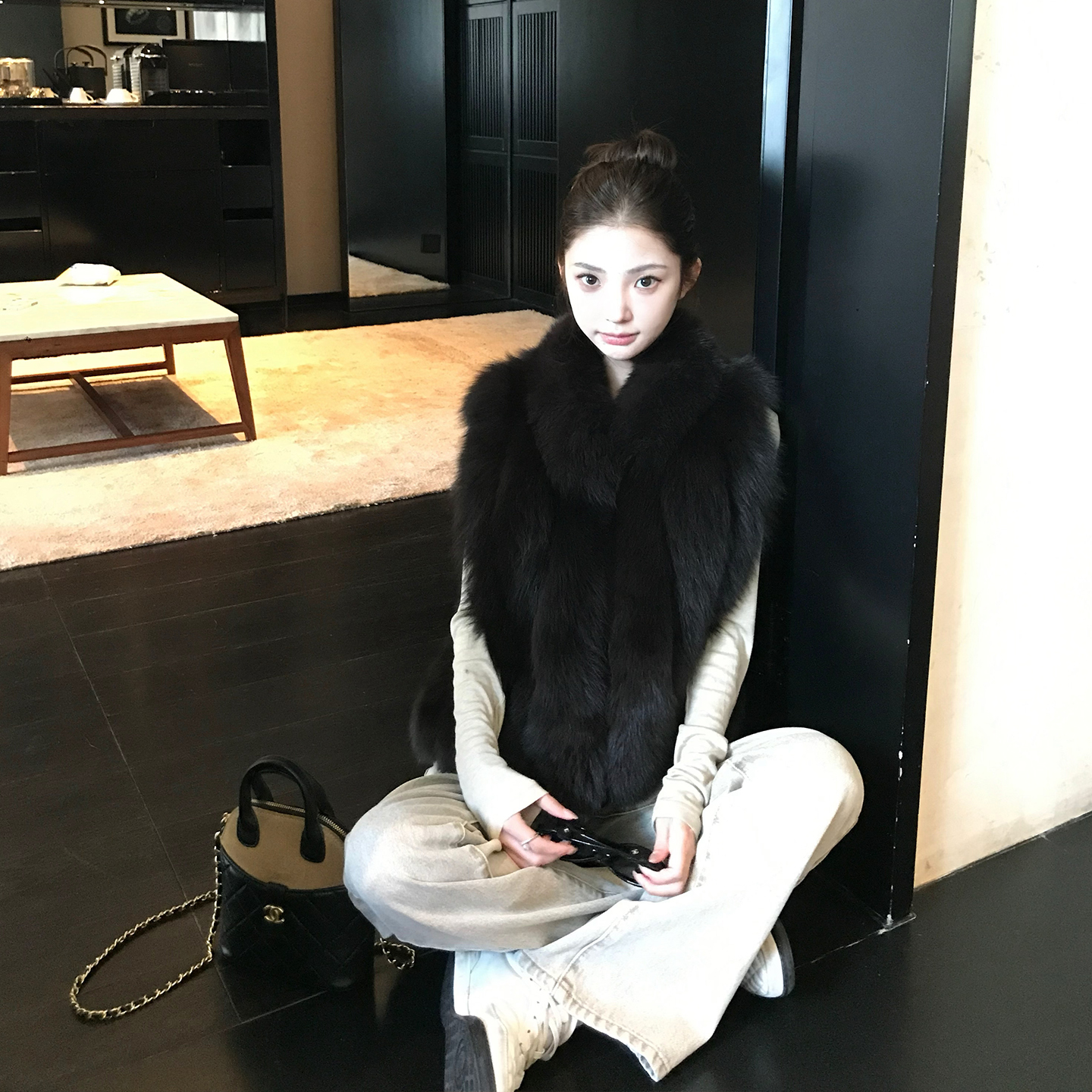 海宁2025秋冬新款进口整皮狐狸毛马甲皮草外套女显瘦百搭B2090