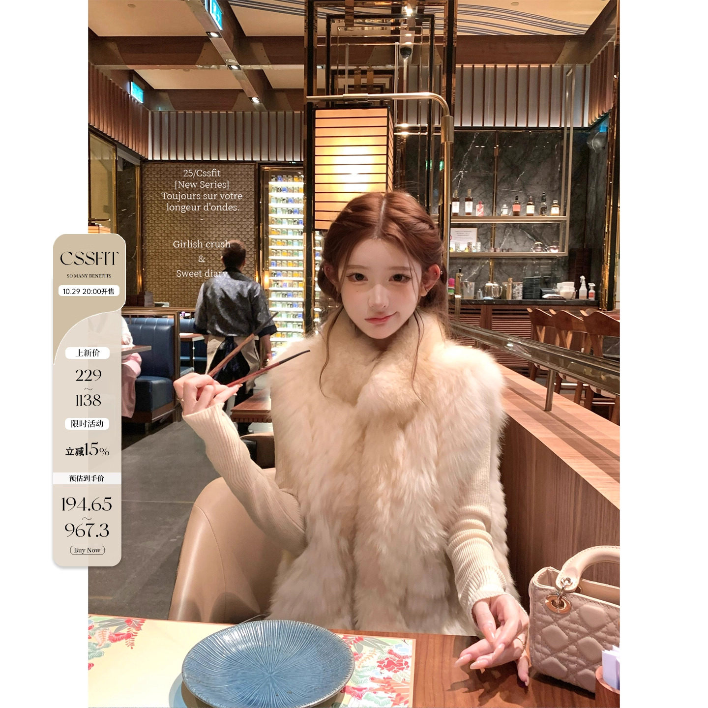 皮毛一体外套女25秋冬高级感轻奢名媛狐狸毛马甲背心显瘦保暖上衣
