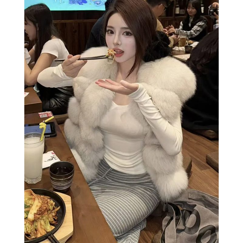2025年秋冬新款韩女ins气质仿狐狸毛马甲时尚显瘦年轻款皮草背心