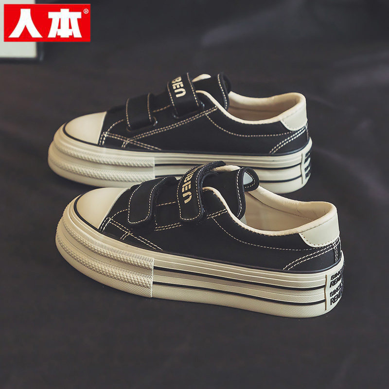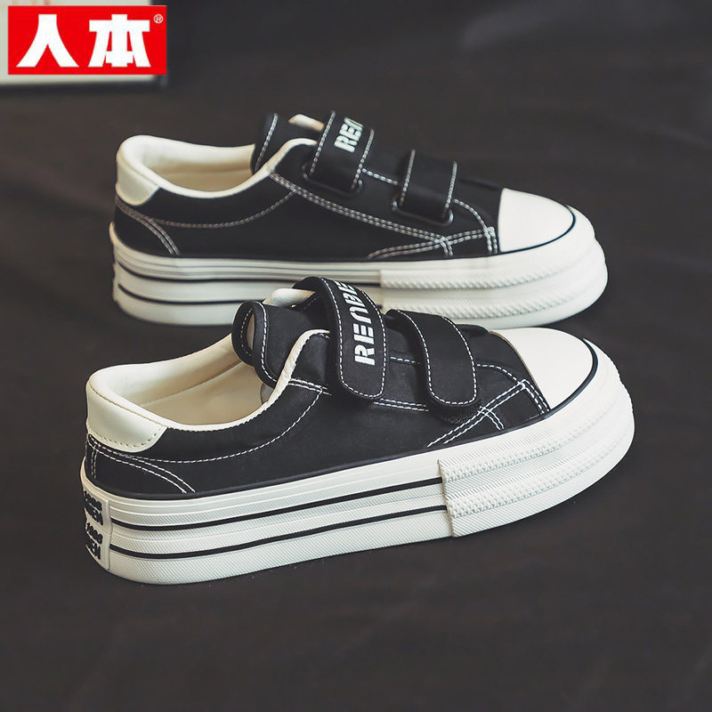 人本魔术贴帆布鞋女春秋2026新款板鞋布鞋女款厚底女鞋运动鞋子潮