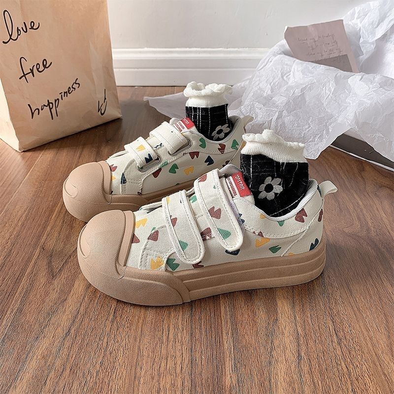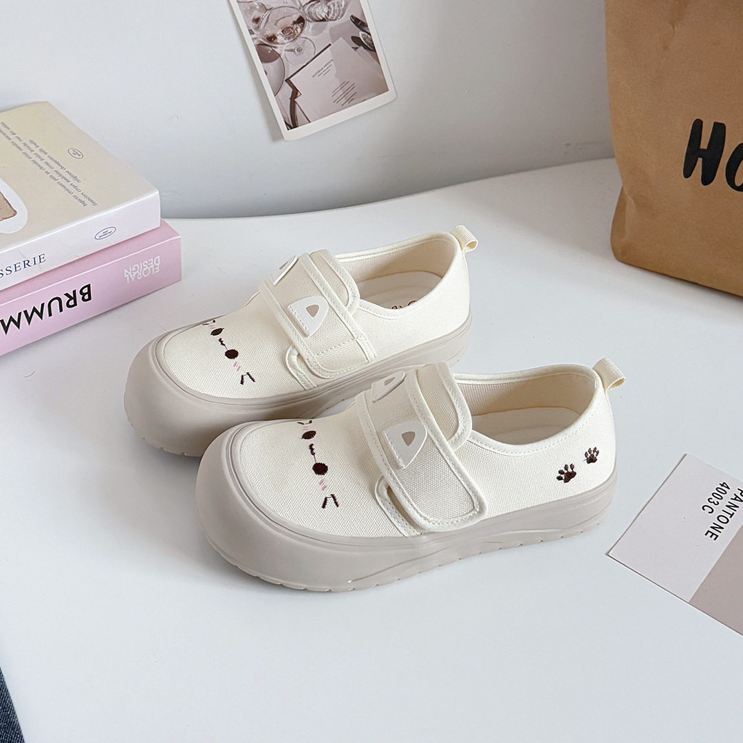夜晚晚 可爱卡通魔术贴帆布鞋女2026新款春季圆头小白鞋休闲板鞋