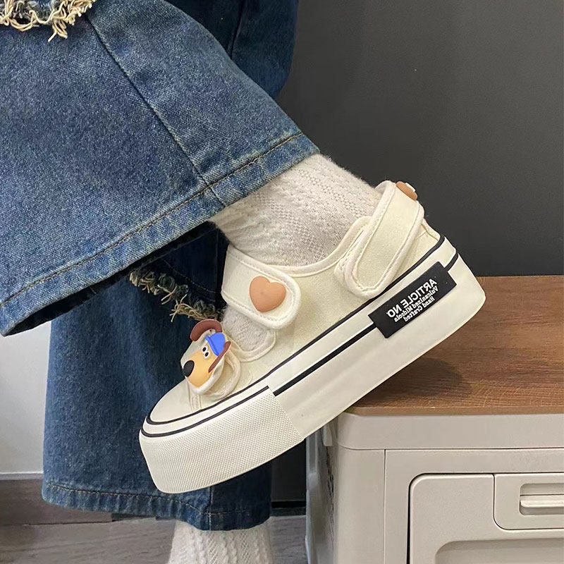 卡通可爱魔术贴帆布鞋女2024年秋季新款厚底显脚小圆头休闲板鞋潮