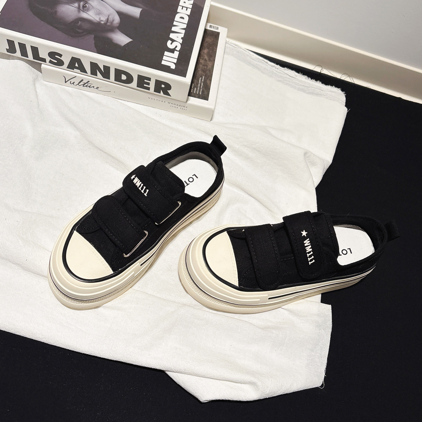 魔术贴帆布鞋女2024夏季新w款板鞋厚底休闲百搭免系带增高小白鞋