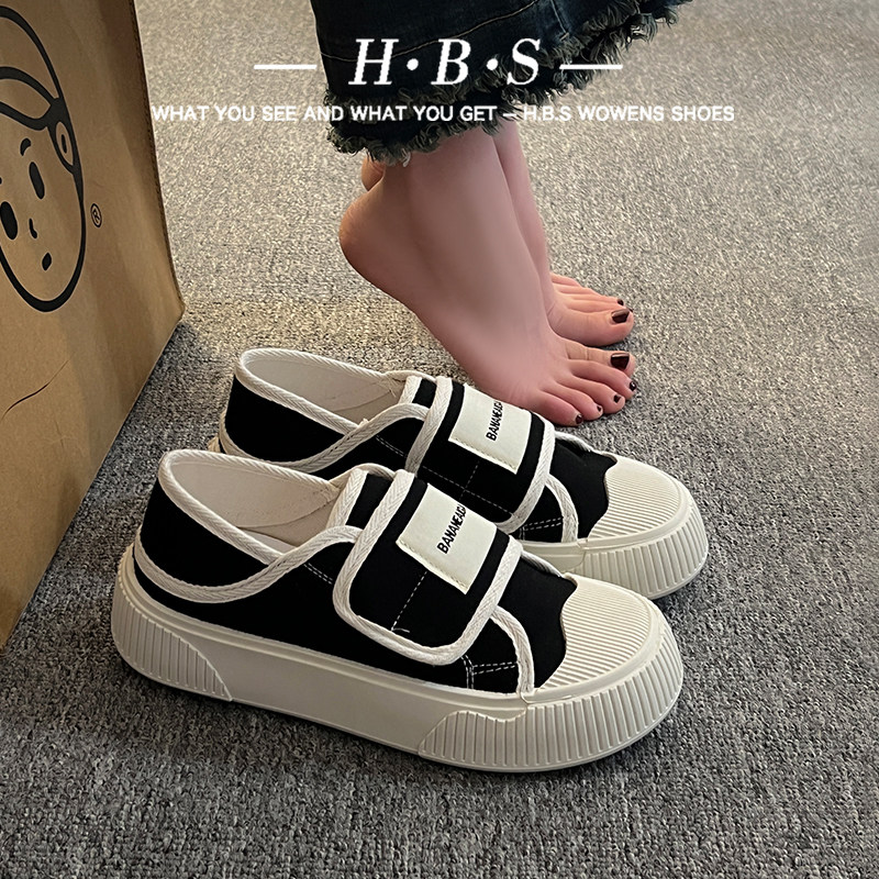 学院风魔术贴帆布鞋女鞋2025新款春秋夏款厚底布鞋休闲板鞋一脚蹬
